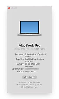 - Tên máy (ví dụ: MacBook Pro (13-inch, 2019))