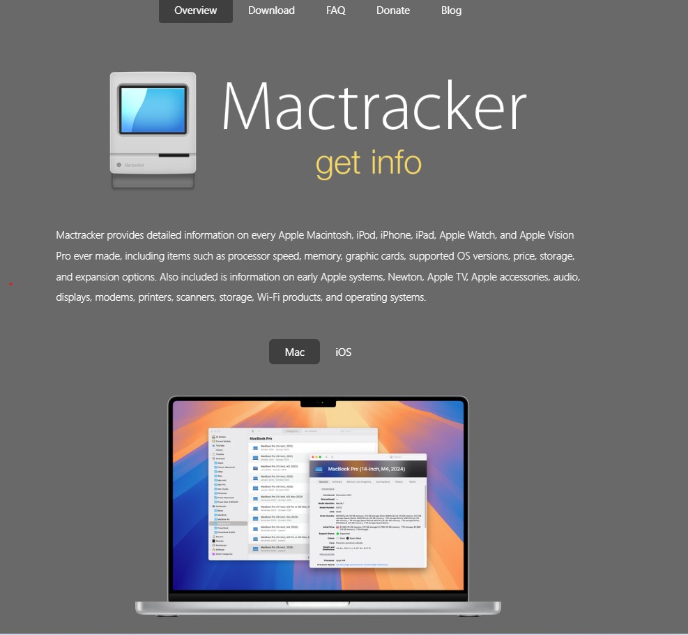 🔍 Cách 3: Sử Dụng Ứng Dụng “MacTracker” (Miễn Phí)
