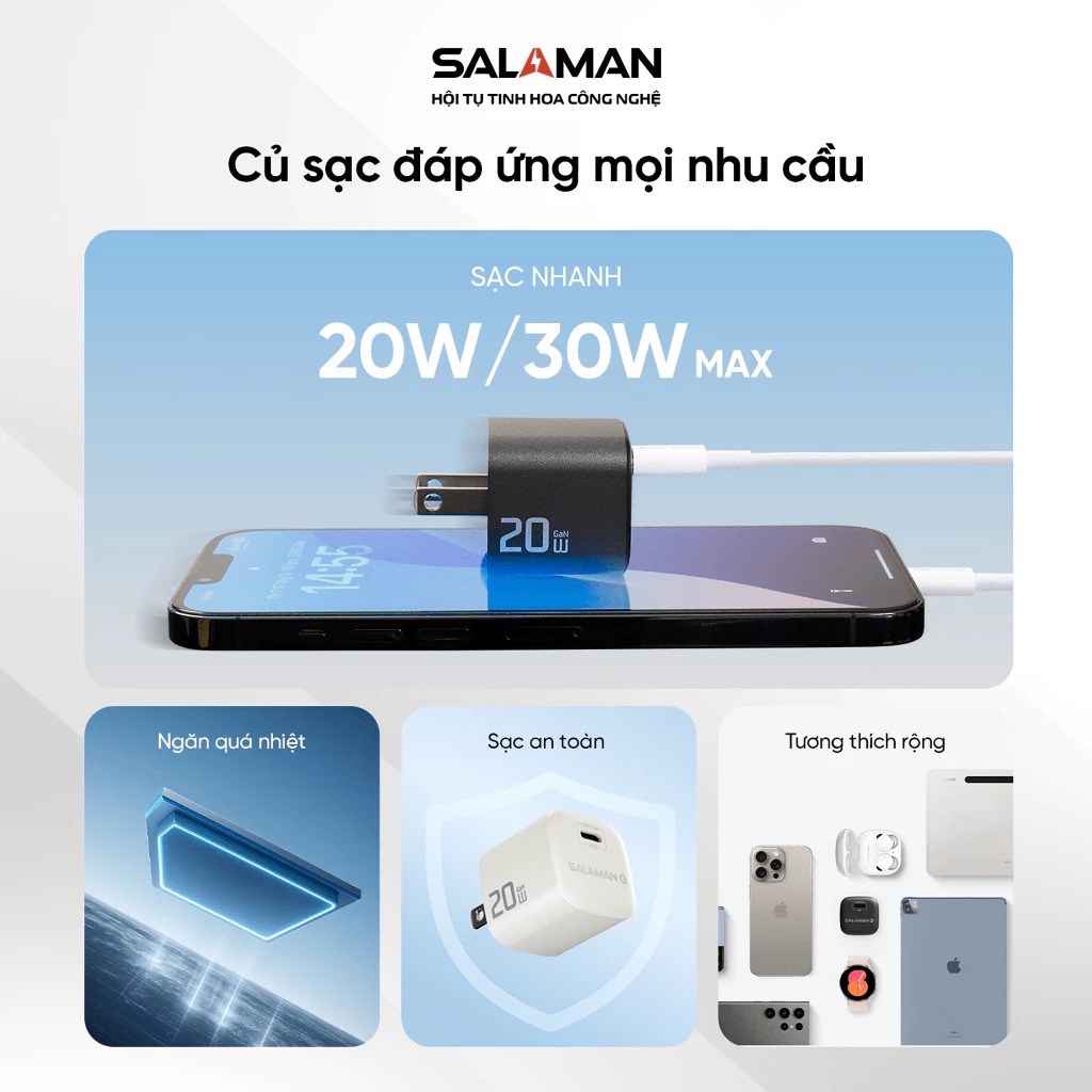 Củ Sạc Nhanh SF GaN 20W – 30W Salaman Edge Cho iPhone/Android