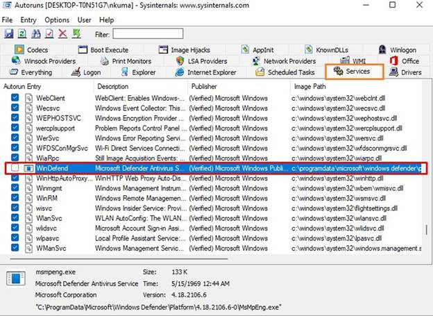 Bước 7: Khi Autoruns Systeminternals xuất hiện, chọn tab Service (việc này có thể mất một lúc)